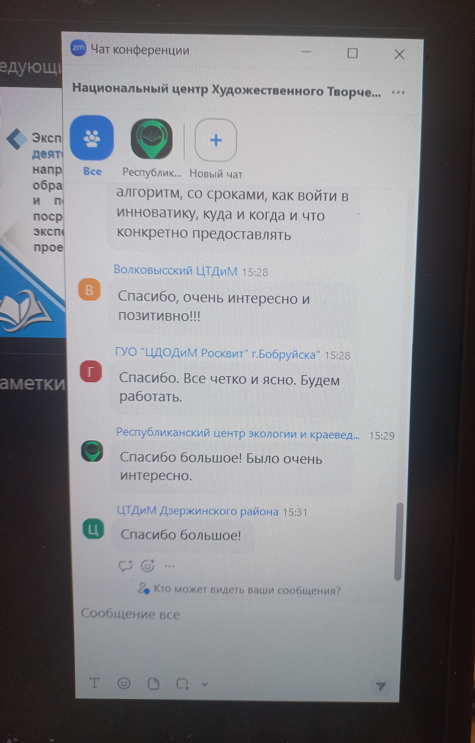 В ходе вебинара участники обсуждали актуальный вопрос: включенность УДОДиМ в инновационную деятельность, позволяющую отвечать современным требованиям социальной среды, потребностям детей и реализовать основные задачи системы дополнительного образования детей и молодежи.