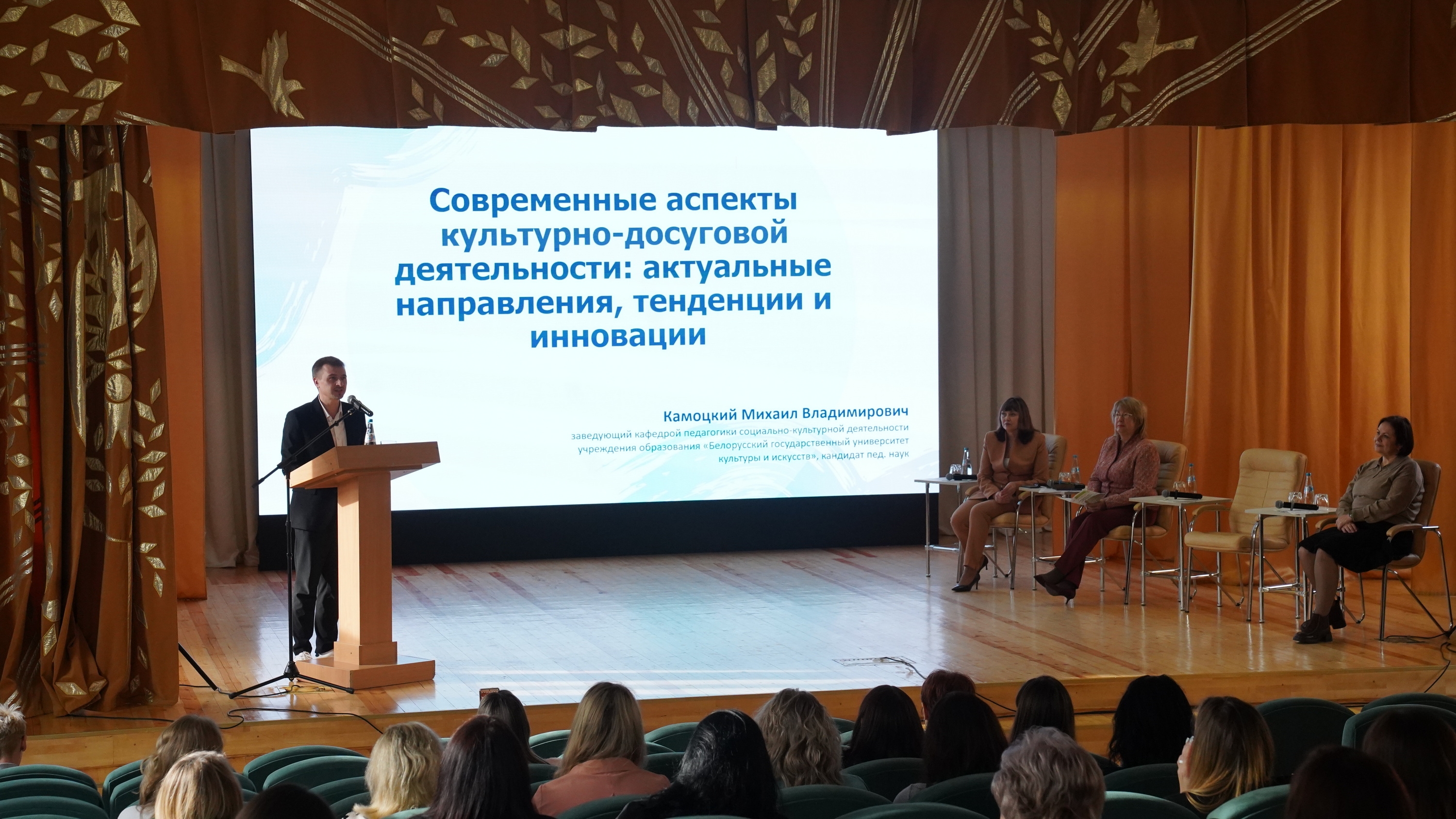 Современные аспекты культурно-досуговой деятельности: актуальные направления, тенденции и инновации представил Камоцкий Михаил Владимирович, заведующий кафедрой педагогики социально-культурной деятельности Белорусского государственного университета культуры и искусств, кандидат педагогических наук.