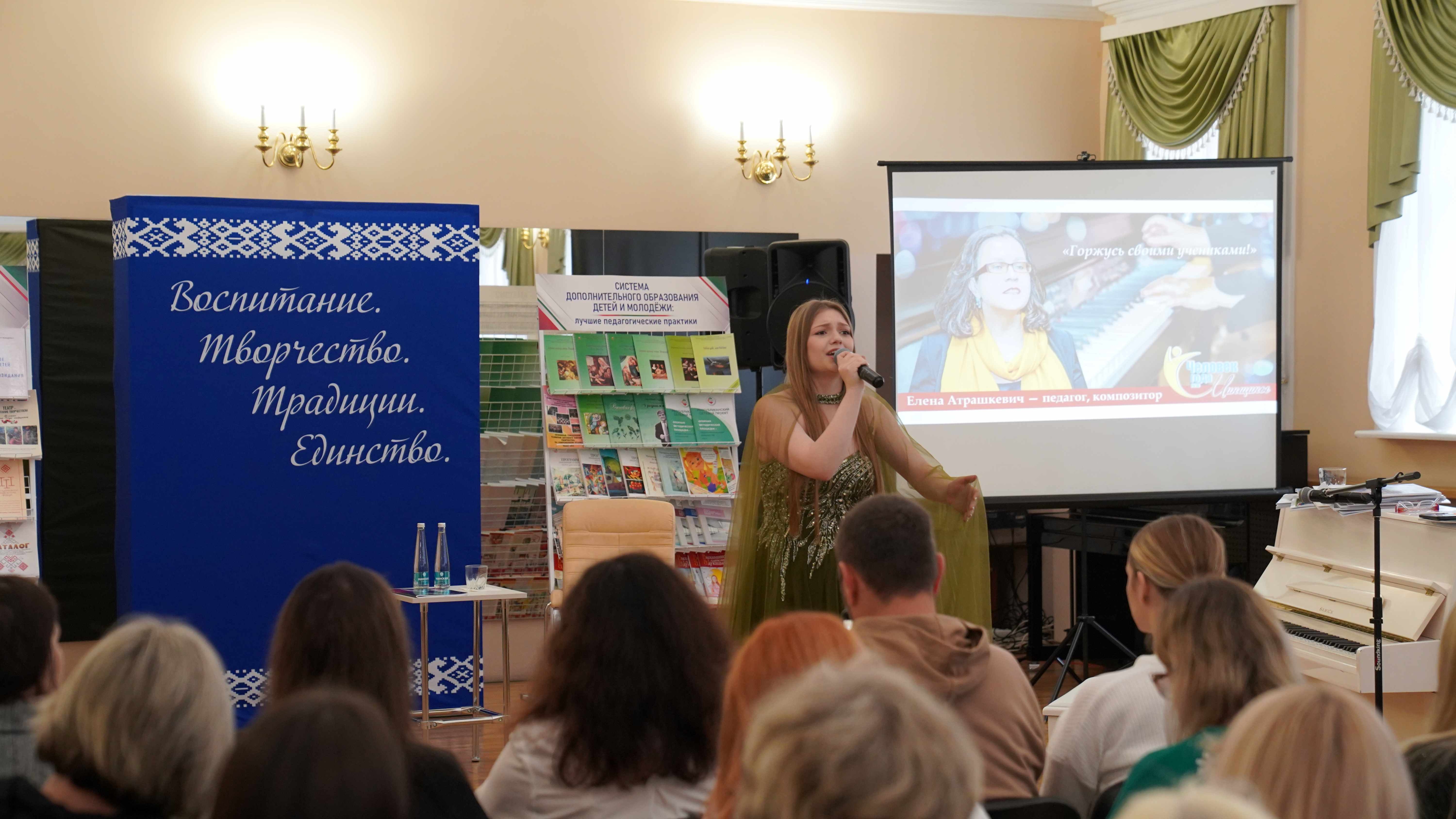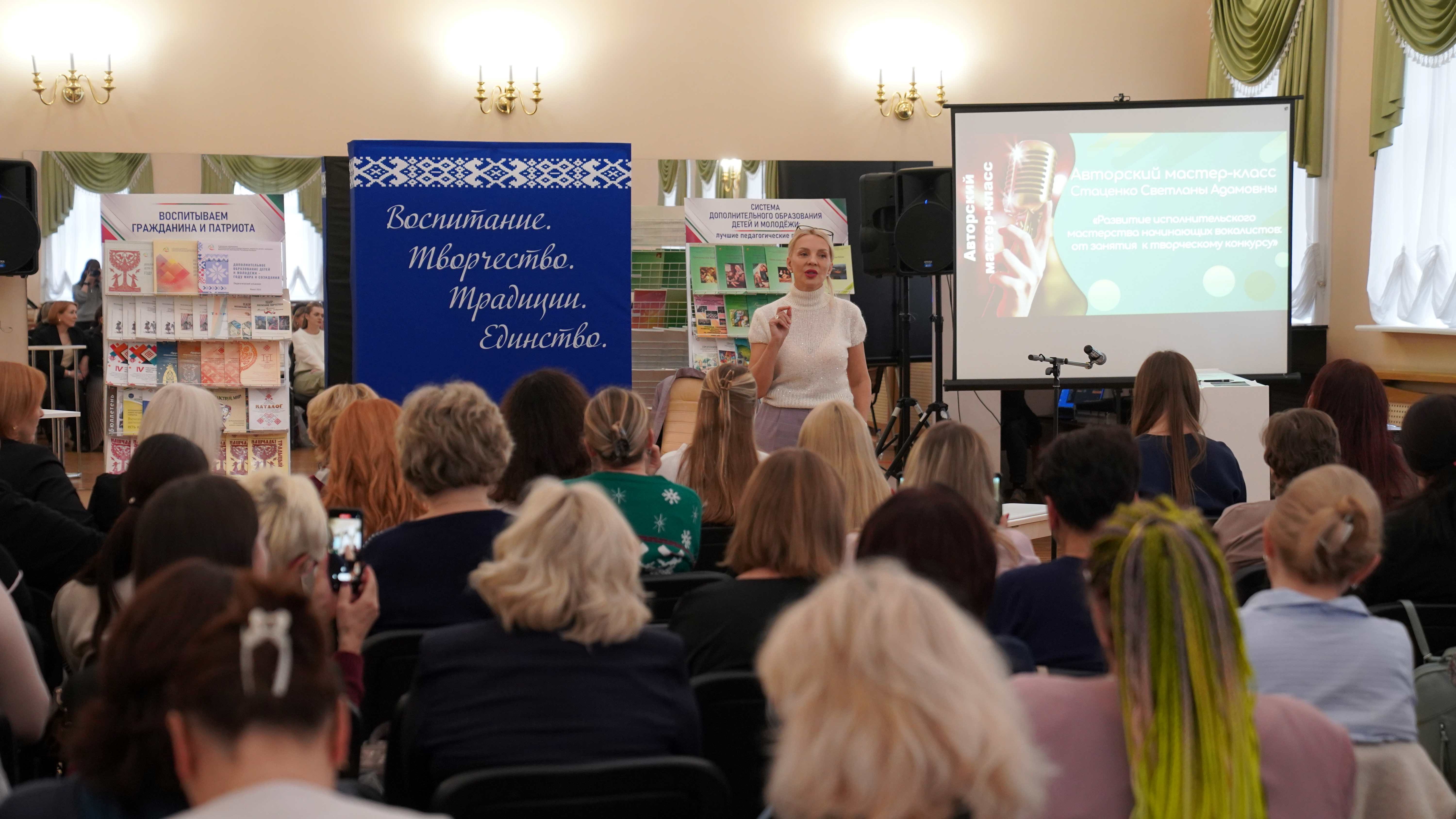 В рамках республиканского мастер-класса состоялась творческая мастерская Атрашкевич Елены Викторовны «Об  исполнительских приемах и авторской интерпретации славянских произведений песенного жанра в работе с юными вокалистами (из опыта преподавания эстрадного вокала)».