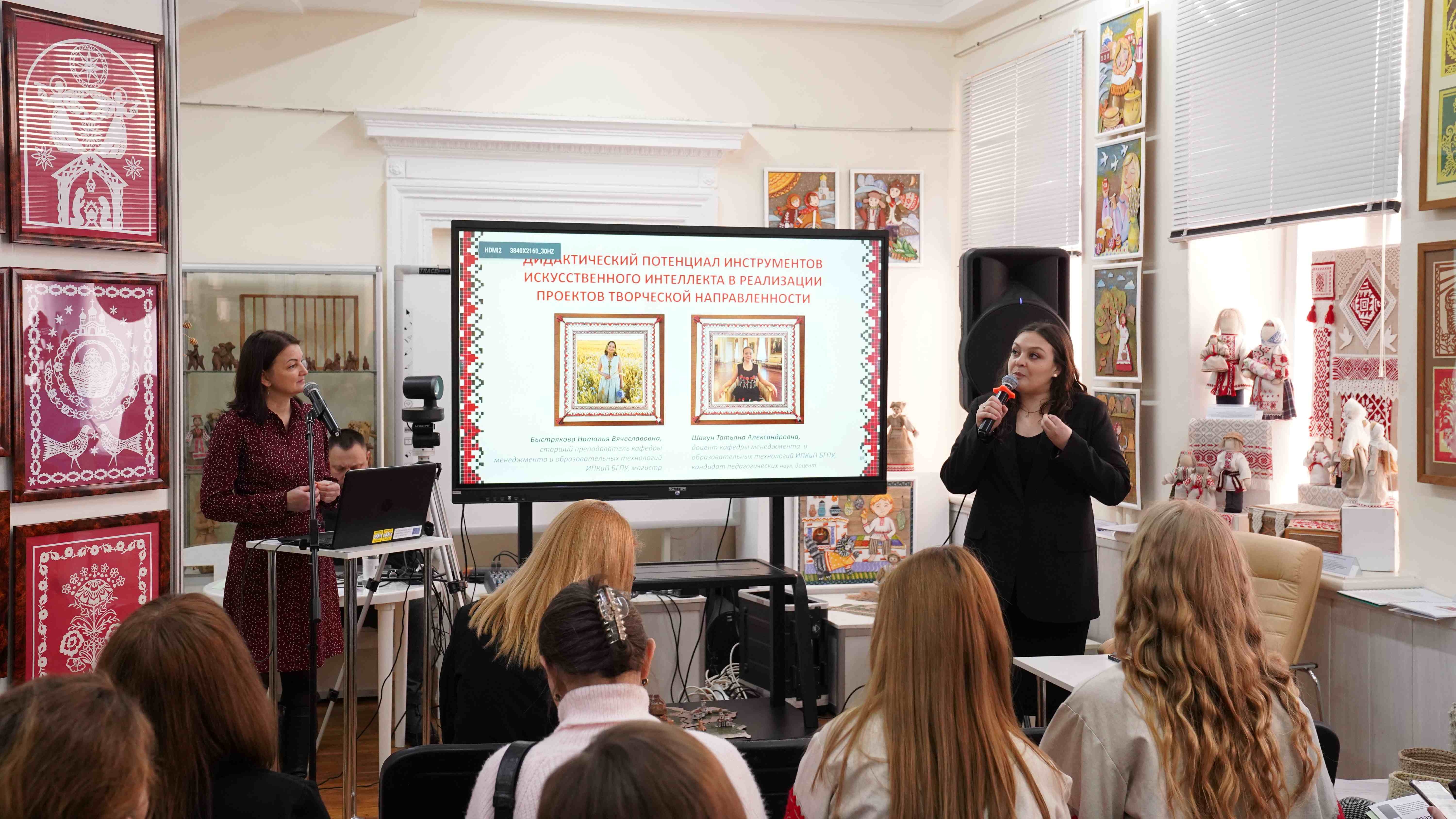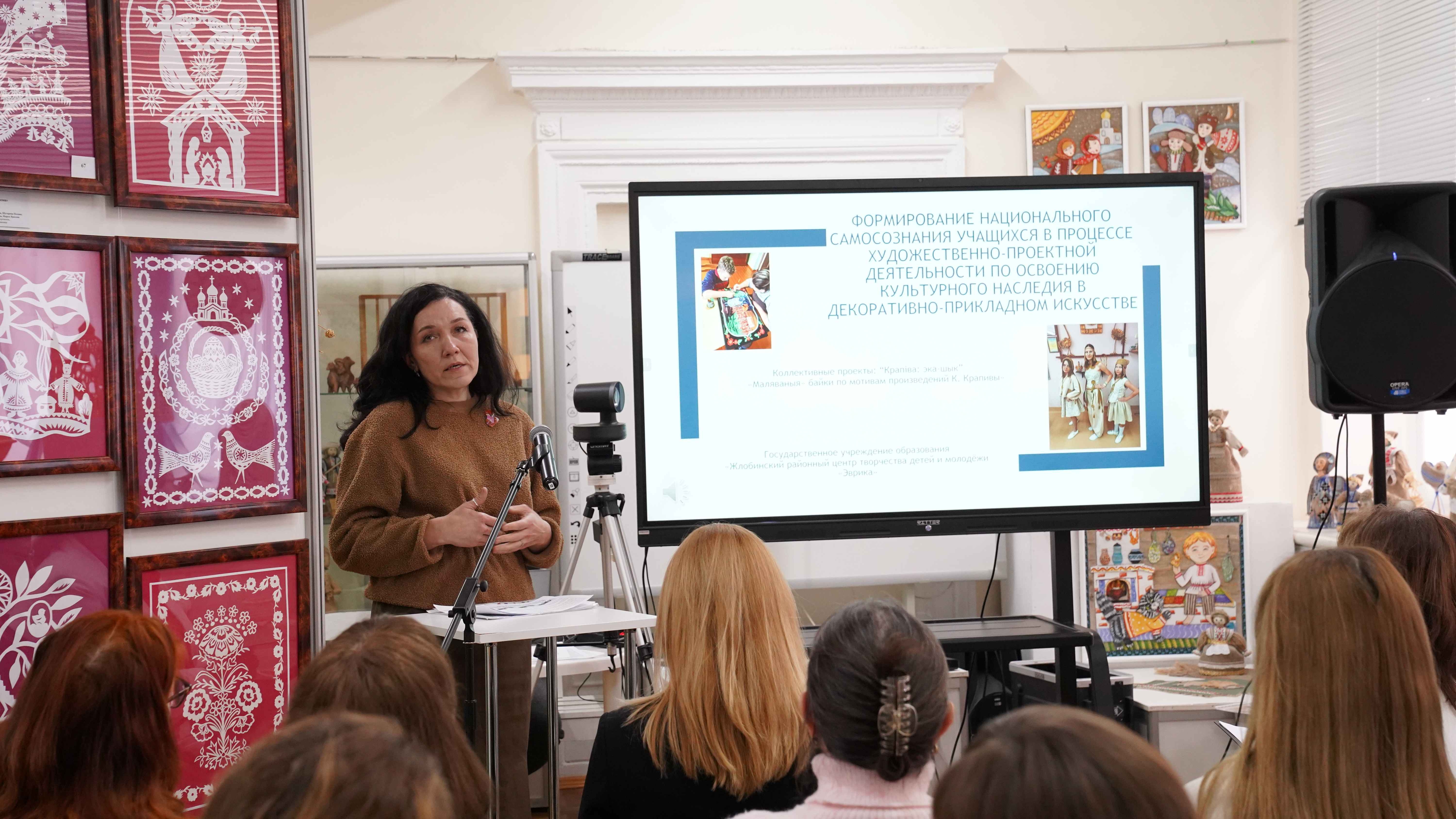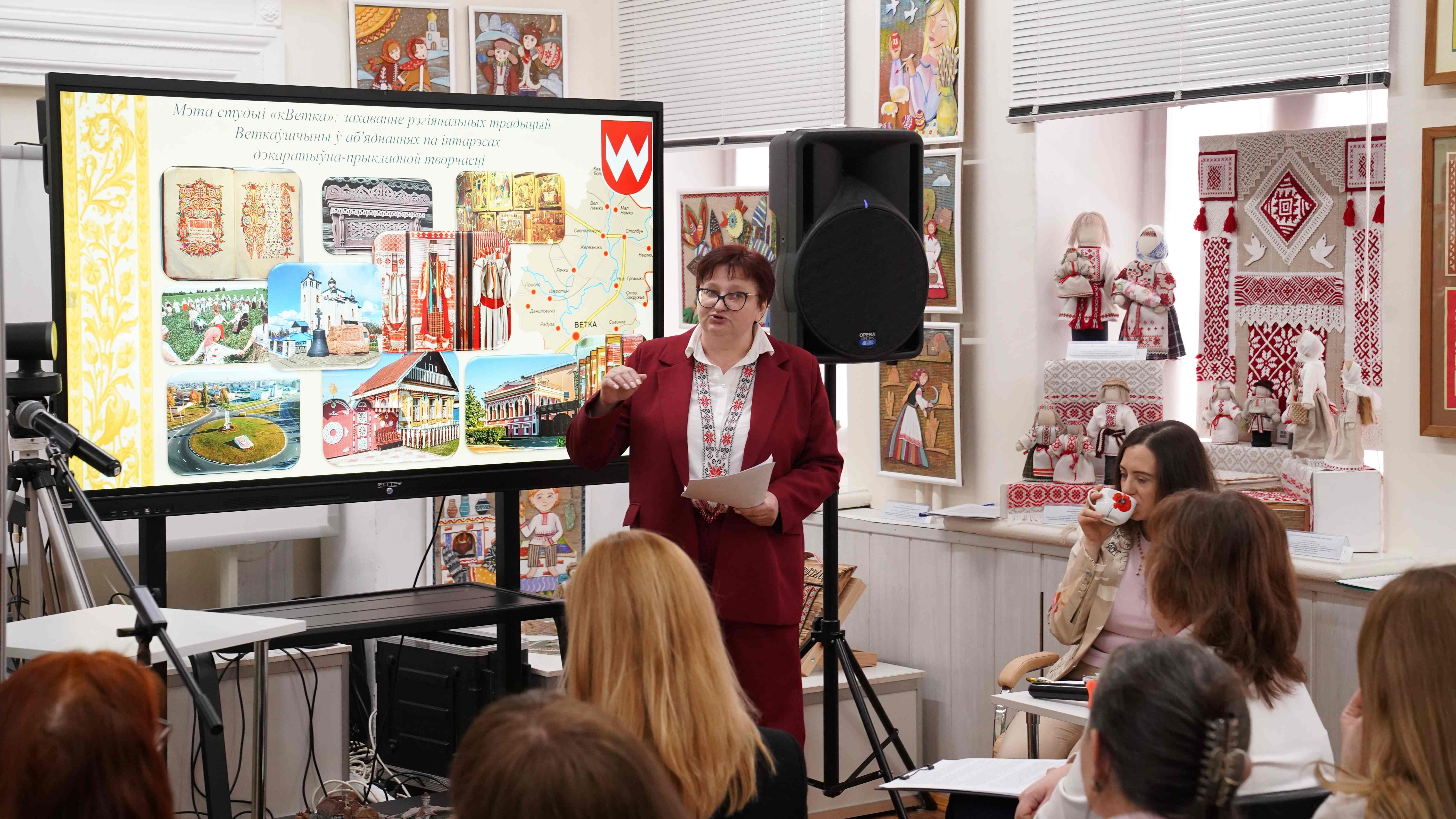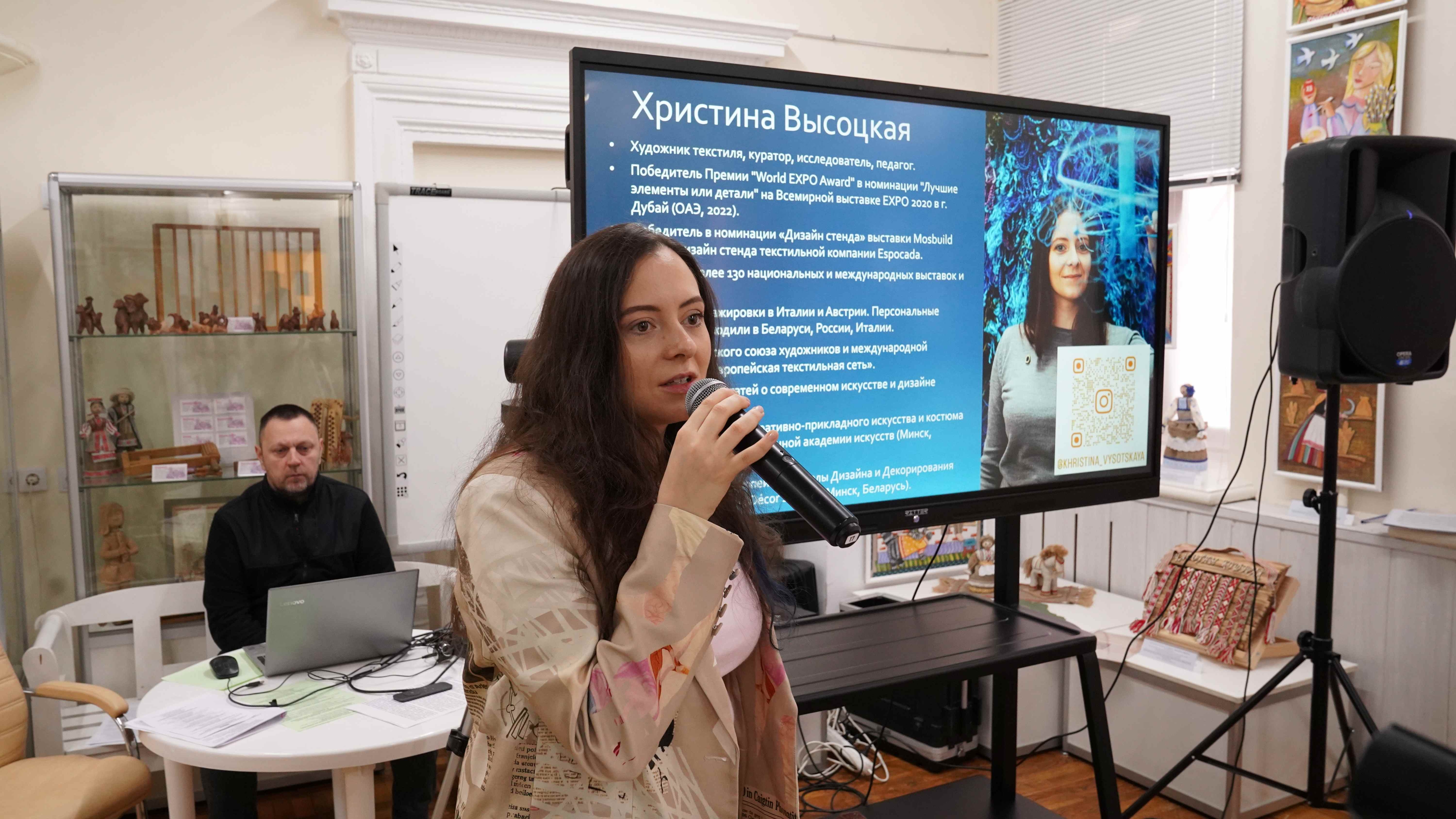 – актуальный диалог по теме «Культурное наследие как форма сохранения традиций и ресурс создания проектов в сфере актуального искусства и дизайна» Высоцкой Христины Игоревны, доцента кафедры декоративно-прикладного искусства и костюма УО «Белорусская государственная академия искусств», которая презентовала авторское методическое пособие «Современные тенденции и особенности проектной работы в образовательном пространстве в сфере декоративно-прикладного искусства и дизайна»;