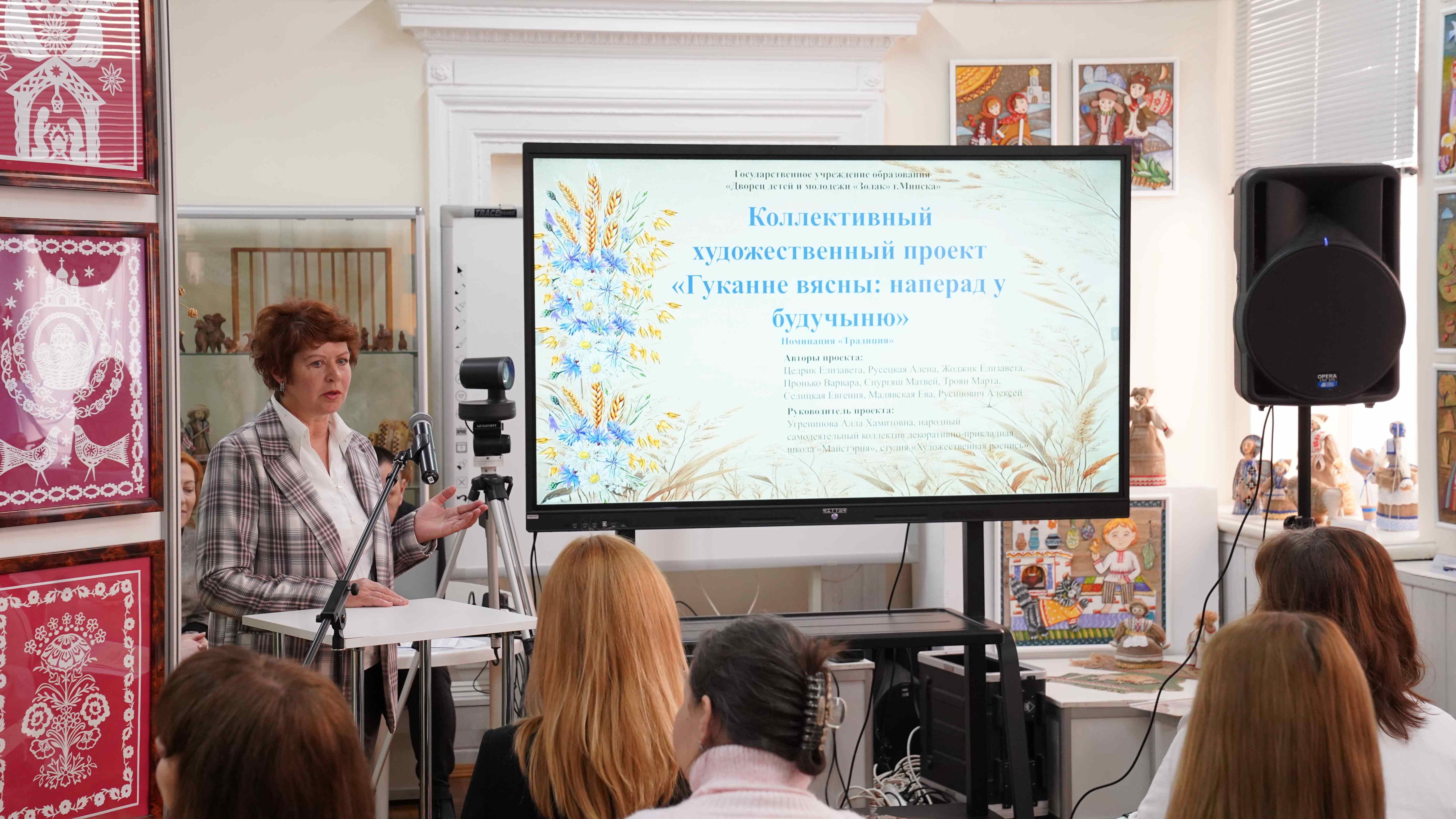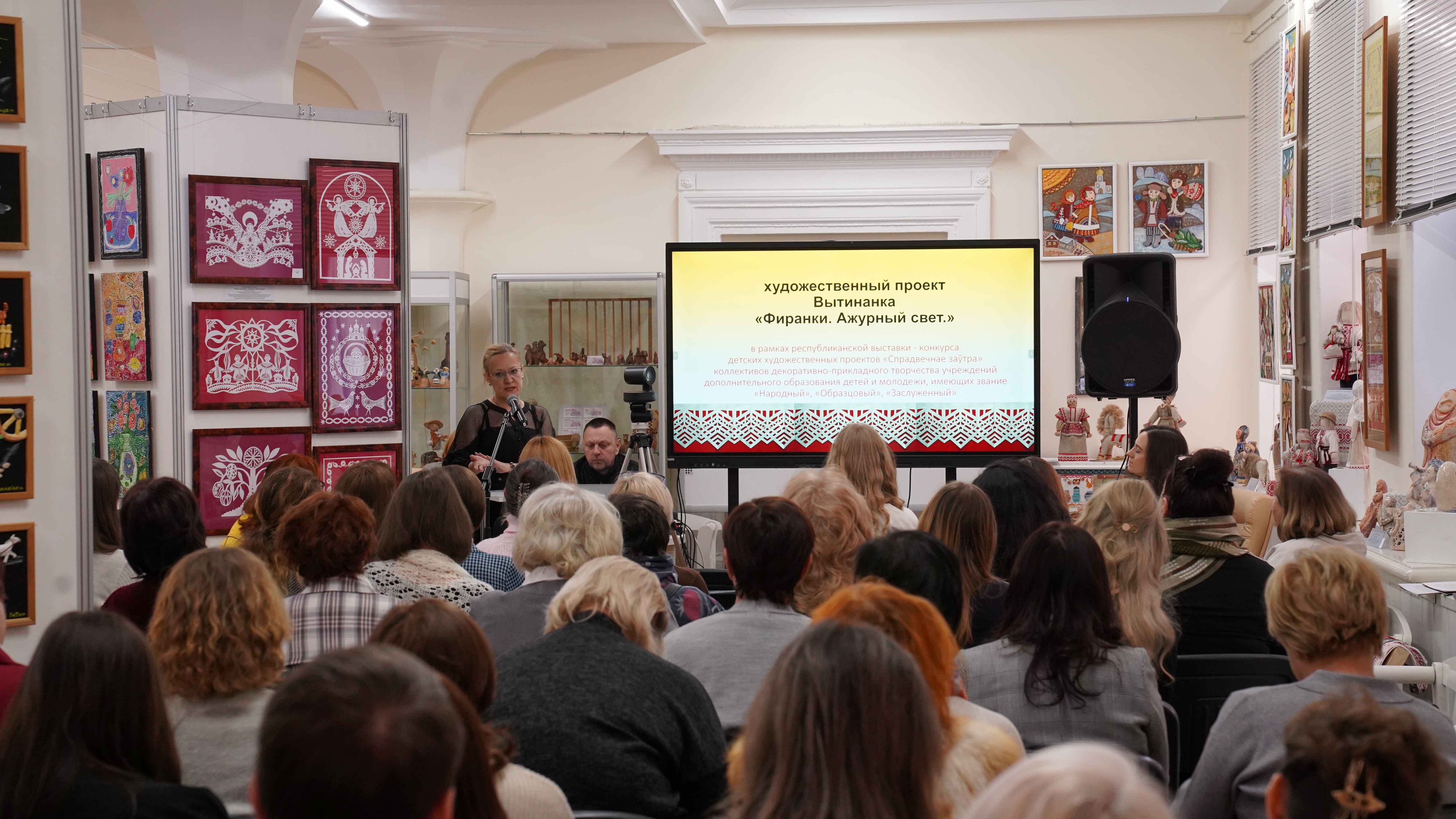 Были реализованы продуктивные формы профессионального взаимодействия: открытый просмотр выставки, работа экспертного сообщества педагогов, мастерская педагога, в ходе которых состоялись рефлексия и обмен опытом эффективной художественно-творческой проектной деятельности в студиях, презентация региональных детских художественных проектов коллективов декоративно-прикладного творчества, имеющих звание «Заслуженный любительский коллектив Республики Беларусь», наименование «народный» («образцовый»), учреждений дополнительного образования детей и молодежи, представленных на Республиканской выставке-конкурсе «Спрадвечнае заўтра»: