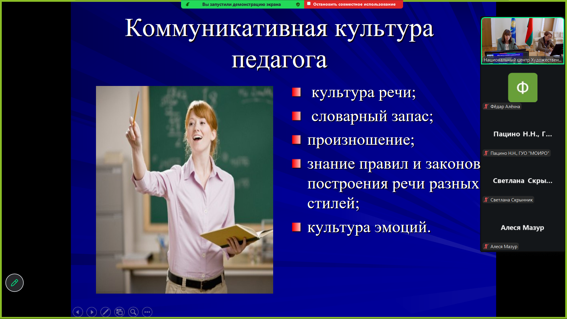 Спикером выступила Наталевич Ольга Геннадьевна, заведующий кафедрой педагогики, кандидат филологических наук, доцент государственного учреждения образования «Минский городской институт развития образования». |