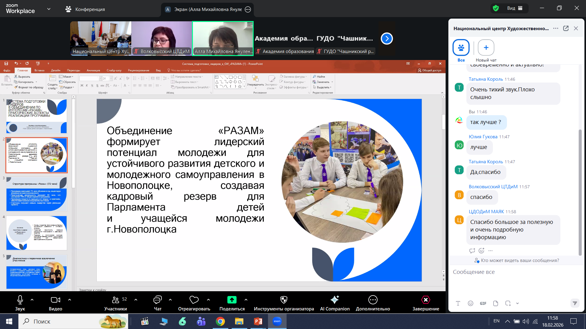 Шеремет Тамара Павловна, заведующий сектором социально-педагогической работы, Положечко Ольга Владимировна, методист отдела научно-методического и психолого-педагогического сопровождения дополнительного образования учреждения образования «Национальный центр художественного творчества детей и молодежи» Министерства образования Республики Беларусь обозначили особенности организации и проведения Республиканского конкурса программ объединений по интересам социально-педагогического профиля, который проходит с января по май 2026 года.