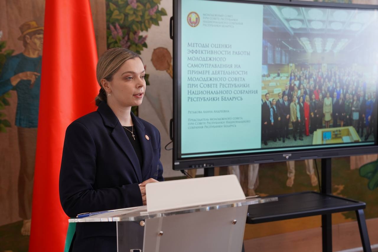 - О методах оценки эффективности работы органов самоуправления рассказала председатель Молодежного совета при Совете Республики Национального собрания Республики Беларусь Алина Ретькова.