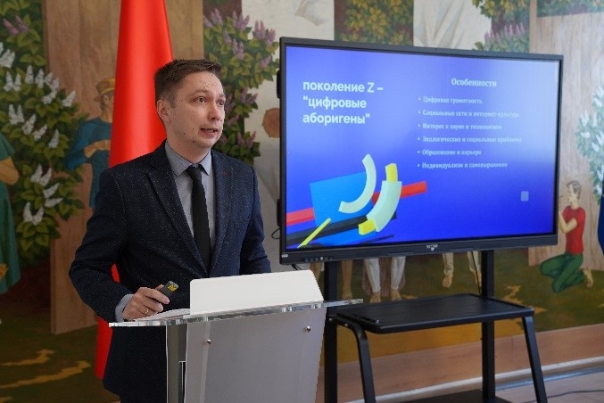- Возможности цифровых технологий для повышения активности и вовлеченности молодежи представил Антон Сорокин, ведущий референт информационно-аналитического управления Секретариата Палаты Представителей Национального собрания Республики Беларусь;