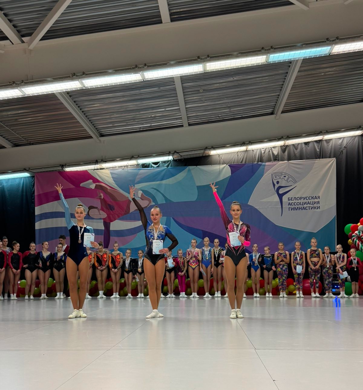 Поздравляем команду Национального центра художественного творчества детей и молодежи по аэробике спортивной и педагога Лапицкую Д.Г. с победами в Открытом Кубке Республики Беларусь и Открытых республиканских соревнованиях по аэробике спортивной 13-14 декабря 2025 года в г. Минске: