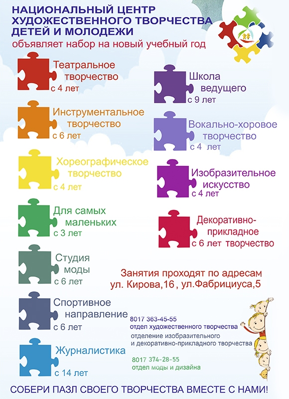 Любую интересующую информацию можно узнать по тел.: (17) 363 45 55 (отдел художественного творчества)